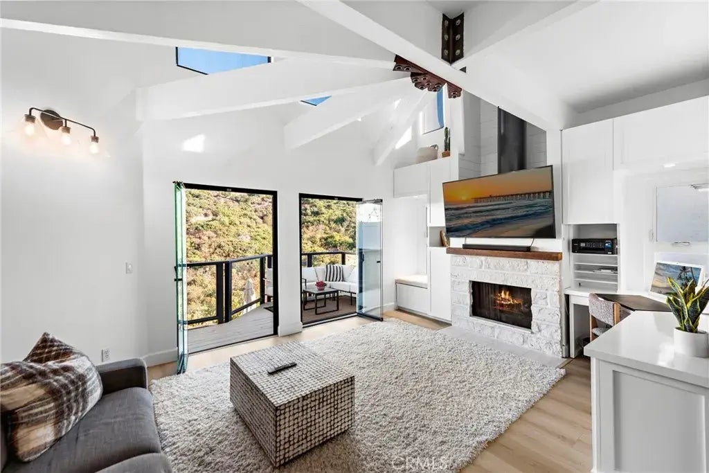Situated in the picturesque hillside community of Arch Beach Heights, this contemporary coastal home offers a rare combination of tranquil canyon views and Pacific Ocean vistas from both the front and rear of the home. Entering through the private side gate leads through the beautifully landscaped tranquil entry into home's light-filled main living spaces. The remodeled kitchen boasts updated stainless steel appliances, quartz countertops and convenient walk-in pantry, with adjacent dining banquette flowing seamlessly into the light and bright living room featuring double height beamed ceilings, giving the space an airy, coastal ambiance. Custom frameless glass doors lead out to the ocean and canyon view decks for effortless indoor/outdoor living. Main level also includes conveniently located individual laundry room, direct access garage, and powder bath. Large upper primary suite has it's own fireplace, an ocean view deck, built-in custom closets, and updated en suite bathroom. Two additional bedrooms across the hallway, one with a loft and one with a walk in closet, share a remodeled hallway bathroom. Great location in the neighborhood provides easy access to Moulton Meadows park, and Lagunas famous beaches, galleries, restaurants and shops are a short distance away.