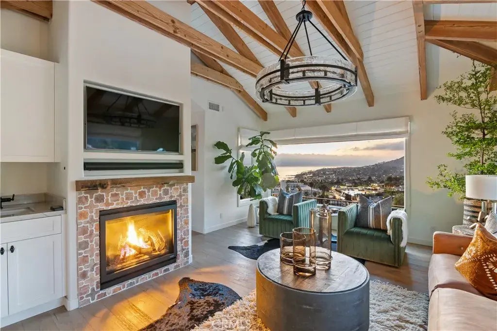 Welcome to this truly one-of-a-kind custom home, meticulously taken down to the studs and fully remodeled in 2021. Featuring 4 bedrooms, 3.5 baths, and an additional bonus room, this residence offers an extraordinary blend of style, function, and luxury. As you step inside, you'll be greeted by wide plank, white oak flooring and custom white oak interior doors, all complemented by stunning views of Catalina Island, whitewater, and the sandy beaches of North Laguna. 3levate Design Group has curated exceptional custom touches throughout, integrating fine finishes in every detail. Each vanity is adorned with premium white oak and hardware, while the cast iron door hardware brings a timeless, tactile quality to each room. From unique tile selections to elevated quartzite countertops and high-end lighting, every element has been carefully chosen to enhance elegance and individuality in the design. The primary suite feels exceptionally private, opening onto a spacious deck through large French doors. This outdoor space features a Jacuzzi, creating a perfect retreat right off the bedroom. The outdoor areas are equally impressive, offering a resort-like atmosphere perfect for entertaining or unwinding. Enjoy your morning coffee overlooking the ocean on the expansive deck off the formal living room, or gather around the backyard fire pit to take in the ocean breezes. Situated on a rare street-to-street lot in the highly sought-after Lower Temple Hills, this home boasts convenient parking access through a back gate that opens onto a quiet cul-de-sac, providing several additional park