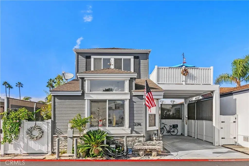 Elegant Waterfront Escape...This spacious layout features an abundance of natural light, creating a bright & airy atmosphere throughout the home. The charming exterior is complemented by elegant flooring and finishes, contributing to the overall elegance of the property. The expansive living area boasts high cathedral ceilings Space for comfortable seating, while the outdoor living space includes a covered patio, offering an opportunity to enjoy the scenic views. Remolded open concept kitchen and all new flooring throughout. The spacious remodeled bathrooms feature upgraded vanity & elegant fixtures, creating a relaxing, refined ambiance. The open floor plan seamlessly integrates the indoor & outdoor living spaces, while the private patio and fenced-in yard offer a serene & secluded outdoor retreat. The upper outside viewing deck provides 360-degree views, allowing residents to fully immerse themselves in the surrounding fantastic location, beauty & climate. Additional amenities include an indoor laundry room, rooftop view deck, access to two clubhouses, shuffleboard courts, fitness room, a card and billiards room. The property's community waterfront location offers access to the waterway & various recreational facilities, including a private beach and waterfront amenities. A private dog park is also available for pet owners.