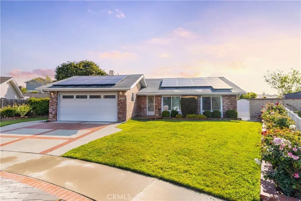 Welcome to this hidden gem! Pana Court is where comfort meets character in the heart of Lake Forest. This cozy haven with endless possibilities is tucked into a serene cul-de-sac. It's a rare, single-level home and the kind of place that just feels right the moment you arrive. With 4 bedrooms, 2 updated bathrooms, and 1538 sq ft of indoor living space, its a home that balances everyday ease with a touch of wow. Step inside to find a bright layout filled with good vibes. The living room has spacious vaulted ceilings, new paint and newer laminate flooring. The family room gives off a warm feeling with a fireplace and large picture window. The kitchen has plenty of granite countertop space, tile flooring and a large window that brings the outside in. The primary bedroom is privately situated away from the other rooms with a glass slider to the patio. Newer laminate flooring, upgraded bathroom and beautiful masonry in the walk-in shower. The other 3 bedrooms are carpeted for comfort and warmth and they share the upgraded 2nd bathroom. Windows and glass sliders are all double paned. The leased solar system will help you keep utility costs down. But lets talk about the yard! Wow! Your lot size is the biggest in this neighborhood boasting 10,101 square feet of space. Enjoy a spacious covered patio area as you step outside the family room and another elevated patio area with Built in BBQ. With this abundant and very private backyard space you have options! Expand, build the pool of your dreams or an ADU, design your chefs garden, or discover backyard party nights. Whatever your vis