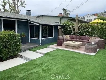 Furnished and available! This two bed, two bath beach cottage is located in the heart of Laguna Village. Restaurants, beaches and art galleries are only a short stroll away, along with a peek sunset ocean view. It has recently been totally remodeled to combine quaint cottage charm with modern sophisticated functionality. There is also a "bonus room". The bonus room is detached from the main house with its own separate access and can be used as an office, work out room or even a third bedroom, complete with A/C and heat! With a queen sofa bed and a large screen T.V., perfect for the older kids who might want their privacy or for watching movies without disrupting other family members. Outdoor living boasts four separate spaces to enjoy the sun - front garden, upper deck, mid deck and lower deck. patio sets, fire pit, sun loungers and a dinning set are available at various levels. The main house is air-conditioned and has highly appointed furnishings throughout. The modern design features a custom kitchen including a seated bar area and all new appliances, in addition to two remodeled contemporary bathrooms. New oak flooring, feature fireplace, LED lighting and smooth finished walls all add to the clean new home feel. The beds in the two bedrooms are both king sized, also included is a full sized futon. There is a long private gated driveway providing plenty of off street parking. And an EV charger outlet completes the package!