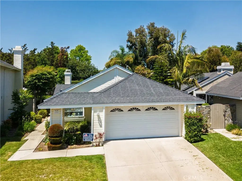 Welcome to your dream home conveniently located within minutes of all South Orange County has to offer! This single-level ranch style house has a massive pool-size yard that is a true showstopper. Nestled in the picturesque community of Woodwinds you will find this home situated on a premium interior location, far away from busy streets and road noise. Home features an open concept living space including soaring ceilings, cozy fireplace and walls of windows that evoke feelings of warmth & comfort. Seamlessly transition from the home to the massive, private backyard for true California living with room for everyone, the perfect retreat for relaxation or social gatherings. Home offers a main floor primary bedroom, guest bedroom and 3rd bedroom that is currently set up as a den. Vaulted ceilings, slider to rear yard & dual closets grace the generous primary suite with ensuite bathroom that welcomes you with enclosed shower over tub. Direct access 2-car garage has epoxy floors and new garage door opener, storage pantry and laundry area. Sunny kitchen features a gas stove, garden window and dining area. Home has a formal dining room and central air conditioning. Located in the heart of Laguna Hills, close to beaches, shops, restaurants, and fantastic schools. Home is truly one of a kind- hurry and schedule a showing today, this one will not last!!!