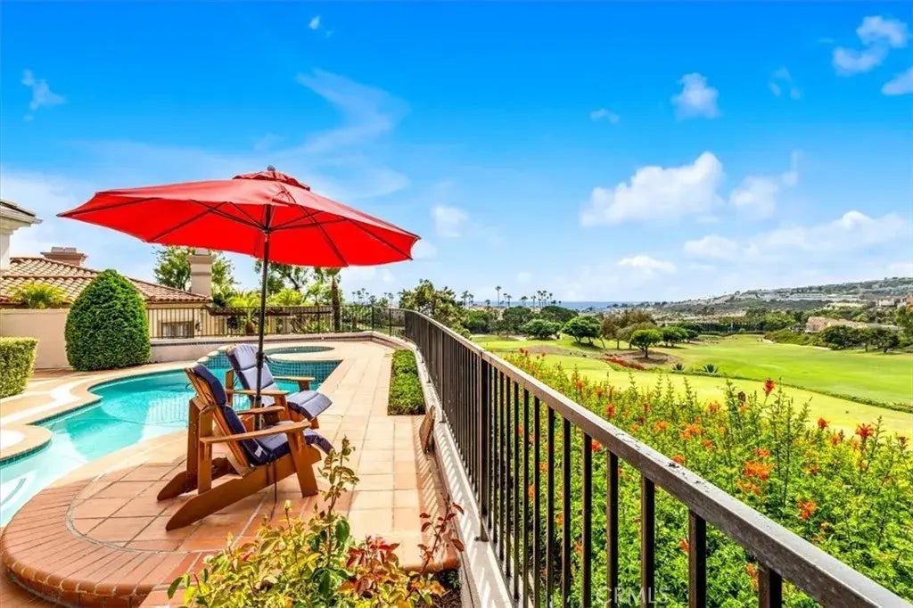 Exclusive pocket of Monarch Beach along the prestigious and serene enclave of Marbella, this grand single-level custom estate offers a rare blend of timeless elegance and coastal sophisticationframed by panoramic golf course and ocean vistas. A gated entrance opens to a private courtyard surrounded by meticulously manicured landscaping. Multiple sets of French doors line the homes facade, setting a gracious tone that continues through exquisite leaded-glass double entry doors. Inside, a voluminous marble foyer bathed in natural light from a vast skylight leads into a formal living room and dining area. The living room is richly appointed with wide-plank wood floors, a stately stone fireplace, and elegant arched windows and French doors that frame breathtaking views of the pool, Monarch Beach Golf Links, and the glistening Pacific Ocean beyond. Designed with culinary excellence in mind, the gourmet kitchen features granite countertops, a six-burner gas range, double ovens, and a generous center island with a prep sink. Contrasting dark stone surfaces complement crisp white cabinetry, while a charming breakfast nook with bay windows opens to the inviting family room. Here, a second fireplace and a wall of French doors create a seamless connection to the homes serene outdoor spaces. The primary suite, located just off the living room for optimal privacy, enjoys gentle morning light and direct courtyard access through its own French doors. This tranquil retreat boasts a third fireplace, mirrored wardrobes, a spacious walk-in closet, and a luxurious spa-style bath with dual vani
