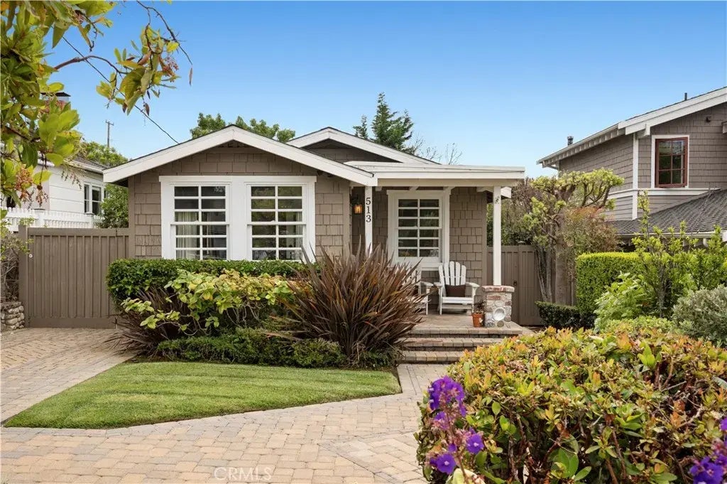 With a coveted location near sandy coves, broad beaches, famous galleries, unique restaurants and enchanting shops, this classic 1928 shingled cottage makes it easy to leave the car at home and enjoy all that Laguna Beach has to offer. Just moments from the seaside towns popular HIP District, the single-level home reveals a private and spacious lot of nearly 4,500 square feet. Its white picket fence is right out of a storybook and embraces beautifully maintained grounds that display colorful gardens, pavered patios and pathways, a long paver-finished driveway with ample parking, and a detached one-car garage. Shade trees sway over a private backyard that complements fun times with friends, relaxing with a glass of wine, or simply kicking back in the sunshine with your favorite book. A covered front porch and inviting Dutch door offer a peek at the ocean and lead to a bright and open interior that features white vaulted ceilings with exposed beams, wood flooring and crisp white-paneled walls. Open shelving and butcher-block countertops embellish the kitchen, both bedrooms are comfortably sized, and two baths shine with updated tile and, in one, a freestanding tub. Direct access to Oak Street Beach is only a few blocks from home, and neighborhood parks, outstanding Laguna Beach schools, and miles and miles of scenic trails are close by. This property captures the essence of Southern California living . . . Where every day feels like a vacation.