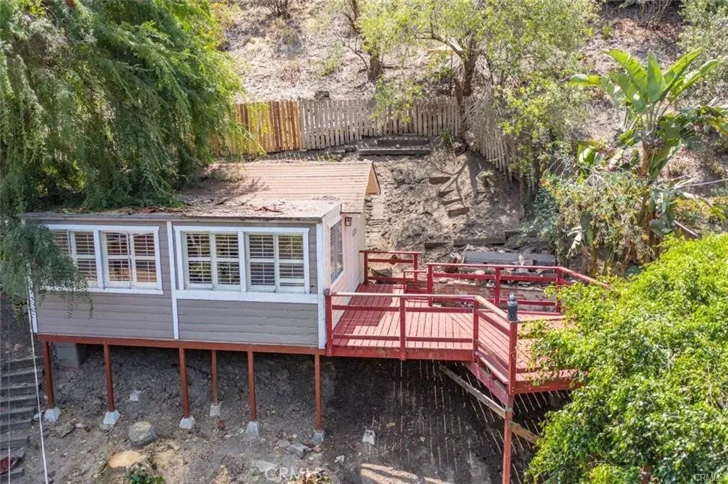 Often referred to as the Laguna Canyon Treehouse, this unique home offers a rare retreat surrounded by panoramic canyon and hillside views. Tucked away in a secluded setting, the property features laminate flooring throughout, plantation shutters, beamed ceilings, a well-appointed kitchen, and a clean, updated bathroom. The bedroom is cozy in size but offers generous closet space. While there are steps leading up to the home, the spacious deck and sweeping views make the journey well worth it. Utilities including water, trash, gas, and electric are all included. Convenient open parking is available directly across the street.