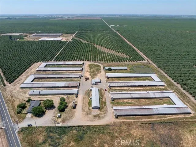 Approximately 110 acres including existing poultry ranch with a corporate lease in place for poultry ranch @ $11,748/mo. There are two homes that are approximately 1300 sq ft each and are part of the poultry ranch lease. Poultry barns consist of approximately 256,320 sq ft. Approximately 70-80 acres are farmed in trees. Trees are on their 10th leaf, planted in 2015 and planted to Independence. The tree spacing is 20.6' x 14'. There is one ag well with the trees on drip irrigation. Buyer can assume farming of the trees upon close of escrow. Cultural costs and crop to be negotiated. Ranch is not in the TID water district.