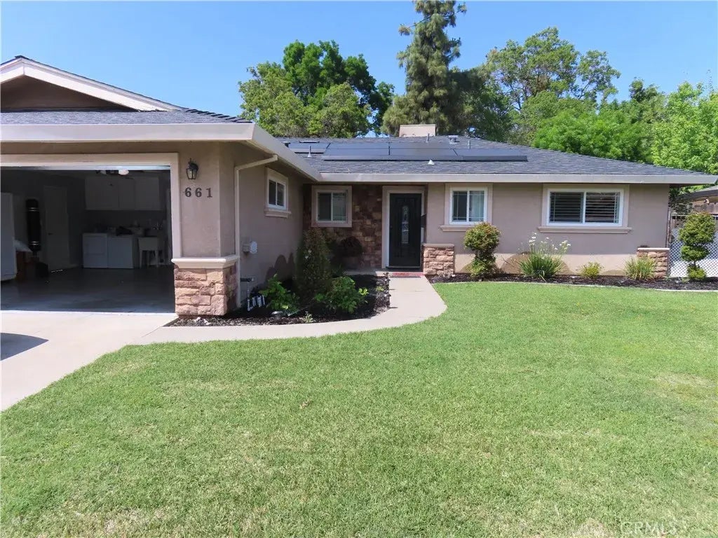 Step into contemporary comfort and timeless design with this beautifully renovated 1,556 sq. ft. home, ideally located near local amenities and main roads. While being walking distance from the college and minutes from uptown restaurants, shopping at the mall, grocery stores, and the dog park, this residence offers both convenience and charm. Inside, you'll be welcomed by a bright, open floor plan with a modern concept that flows seamlessly throughout the home. The spacious kitchen is a true showstopper, featuring luxurious quartz countertops, a large quartz island perfect for entertaining, a double oven, and sleek cabinetry. Crown molding adds a touch of sophistication, while every door and window has been upgradedincluding energy-efficient double-pane windows for added comfort and cost savings. All bathrooms have been elegantly updated with quartz finishes, and the entire home is outfitted with durable, stylish porcelain tile flooring. From top to bottom, every detail reflects quality craftsmanship and modern appeal. With easy access to main roads like M and Yosemite, this beautiful home is perfect for anyone looking for upscale living in a highly desirable neighborhood. NO mello Roos and No special taxes. NEW ROOF! The part of the roof with solar panels was fixed by sunrun, the rest of the roof is NEW and just got redone as of 07-21-25.