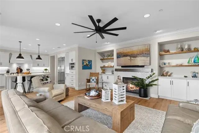 This stunning Villa in the exclusive gated community of Pacific Shores offers luxury and prime coastal living. The 4-bedroom, 4.5-bathroom home offers an exceptional layout with 3,604sqft of living space. The home features an epoxy coated 3-car garage with custom cabinets, and ocean views from the private third-floor suite. The main level features a fully renovated gourmet kitchen with Quartzsite countertops to include an expansive island, stainless steel appliances, and oversized refrigerator. The kitchen opens into the dining and living areas, which transition to the courtyard for seamless indoor/outdoor living while enjoying the integrated Sonos surround sound system. The second-floor master suite includes a walk-in closet, jetted tub, and a walk-in shower, with two more bedrooms and a loft to complete the second level. Additional features include new flooring throughout, custom built-ins, tankless water heater, dual-zone AC, custom lighting, and Central Vac. Community amenities include a pool, greenbelts, and playground. Located within walking distance to Huntington Beach, and a short bike ride to downtown. Along with access to award-winning schools, this home offers the ultimate coastal lifestyle.