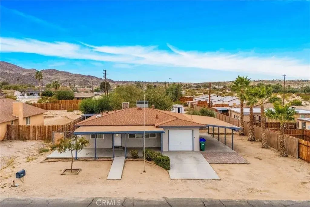 Location, Location, Location!! This 3 bedroom | 1 Bath | 1 Car Garage | 1 Car Carport | 1123 sf | on .34 Acre home is located across the street from Knott Sky Park, one of the best parks in 29 Palms, and within walking distance from hiking trails and mountain climbing. The sellers have installed LVP flooring throughout. This home features a large living room and kitchen with plenty of room to entertain, an oversized covered patio to spend time outside in all weather conditions, over 1/3 acre lot with room to add an ADU, pool, or other entertainment structures, the options are endless, and dual A/C and Evap cooler to give you an option on how you want to cool down during the summer months. This has been an excellent rental income property for the owners. Come take a look and fall in love.