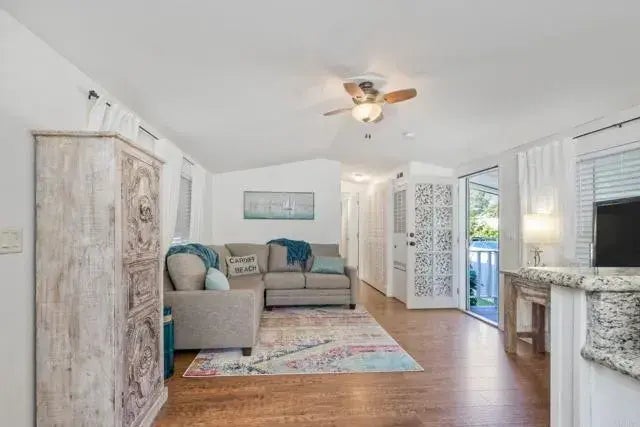 VERY MOTIVATED SELLER!! This adorable, meticulous and spacious 1 bed/1bath manufactured home is in the idyllic beach town of Leucadia and ready to sell!! This home offers a large, open living room & kitchen concept, lots of outdoor space, corner lot, covered carport and small storage shed. This Just steps to the beach, shopping, restaurants, breweries, wineries, coffee shops, Farmer's Market, schools and parks. The Riveria community offers a wonderful clubhouse and pool. Space rent is $1889/month. No HOA fees or traditional property tax. No rentals allowed.