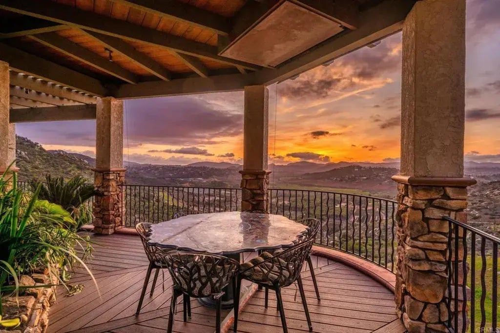 Welcome to your breathtaking retreat! Experience unparalleled panoramic views from this extraordinary estate, majestically positioned high above the picturesque valleys below. Upon entering through your private gate, immerse yourself in tranquility across 16 acres complete with a charming guest house. The stunning custom home boasts sweeping vistas from every room, accompanied by expansive wraparound balconies and patios, inviting you to embrace an indoor-outdoor entertainment lifestyle. The main residence, a testament to bespoke craftsmanship with 3170 square feet, offers three bedrooms and three full baths, with the primary suite conveniently located on the main level. Additionally, indulge in the luxury of a yoga room, gym, theater room, and office, providing the perfect blend of relaxation and productivity. Fully owned solar included and generator connected to the main home in case needed. New private well installed in 2023 provides ample water for both homes and the property. Nestled within this sanctuary is a manufactured guest home with 1,537 square feet, boasting its own private patio and featuring three bedrooms and two full baths, ensuring every guest enjoys unparalleled comfort, privacy and stunning views. This guesthouse, nestled away from the main house, also presents an ideal opportunity for generating rental income. Discover the epitome of tranquility and convenience, with this private oasis just a short drive from an array of amenities, including shopping, exquisite dining, renowned wineries, captivating entertainment, and premier golf. Welcome to your dream
