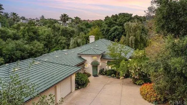 Experience the breathtaking beauty of Los Alisos Drive, a rare opportunity to own a piece of land that has not been on the market for over 50 years. This custom-built home, completed in 2008, sits majestically on nearly 5 acres of picturesque, usable land. Step into this immaculate, single-level Mediterranean-inspired residence nestled within a pastoral setting, complete with a seasonal creek. Boasting 3 bedrooms and 3 bathrooms set on 4.76 acres, this home exudes elegance and charm. Every detail speaks of superior craftsmanship and luxury, from the custom cabinetry to the hardwood floors, crown molding, and exquisite tile work. Entertain effortlessly with professional-grade appliances, including a Pro Series oven, 5-burner range, and a new wood island with a built-in wet bar sink. There is a soft water system in the whole home and two tankless water heaters. Relax in the spacious primary bedroom featuring a luxurious en-suite bathroom with a custom standing shower, Jacuzzi tub, and a generous walk-in closet. Double French doors open to a private patio overlooking lush greenery, perfect for unwinding amidst natures embrace. Off of the spacious kitchen and large laundry room is an attached finished 3-car garage with built-in shelving. The winding driveway lined with mature landscaping leads past a beautiful pasture filled with Walnut, Pear, Macadamia, Persimmon, Avocado, Lemon, Pomegranate, Lime, Orange, Pineapple guava and a variety of Orange trees. The new back patio decking is surrounded by beautiful Oak trees, landscaped with custom rock work and perfect for entertaining