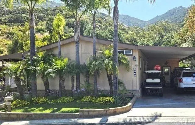 Unique property with seasonal waterfall, stream and spectacular canyon park like setting with mature landscaping and gardens. This home features vaulted ceilings, family room with pellet stove, ceiling fans thru out, kitchen remodeled, new water heater, dual pane windows, fruit trees: orange, lemon, tangelo, apple, pomegranate, kumquat, lime and grapefruit. Permanent 433A foundation and you own the land. Come see what this active community has to offer.