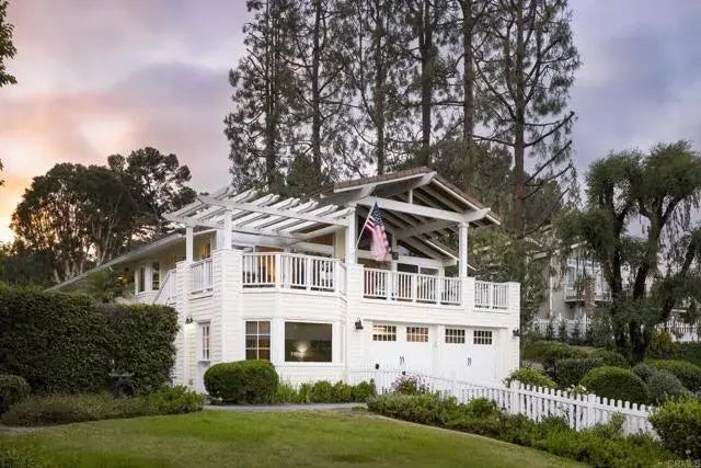 BRAND NEW ROOF INSTALLED AUGUST 2024! THIS IS THE ONE YOU HAVE BEEN WAITING FOR! Panoramic Views! Nestled in the charming community of Olivenhain in Encinitas, this 1/2 acre horse property will grace you with pastoral Tuscany sunrises to the East and suffused, pink sunsets to the West. A one-of-a-kind custom home that marries East Coast charm with West Coast elegance on a quiet, private cul-de-sac. In 2009, the house and land were meticulously renovated from the ground up by the current sellers, with distinctive structural and esthetic features throughout. The result is a coastal sanctuary. Bathed in natural light from panoramic picture windows and skylights, the atmosphere is bright and airy. The scenery is especially stunning from the primary bedroom, living room, dining area, and kitchen.The expansive primary floor, with sublime vaulted and cathedral ceilings, mimics an ample, single-story residence, featuring 5 bedrooms and 3 baths. The lower level includes a spacious bonus room, 1 bedroom, 1/2 bath, and a sizable laundry room. Every room has a walk-out deck or patio, and the grand upper-level deck overlooks the bucolic setting, ideal for entertaining or for a moment of relaxing, refreshing solitude. Majestic trees stand along the front side of the landscaped and exquisitely cared for lot with mature fruit trees and complete privacy. The property is zoned for horses and features solar, an impressive gravel roundabout driveway, and a lovely white picket fence. This serene rural setting is only 10 minutes from every convenience, the beaches, and endless canyon and mountai