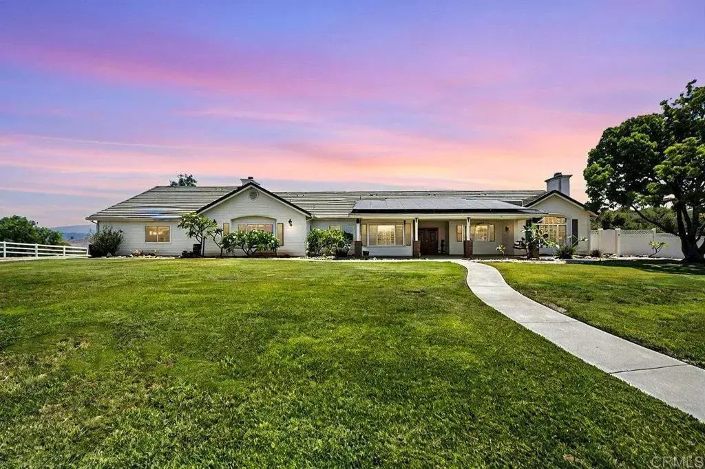 Welcome to this stunning property that'snestled on a generous 2.25 acre all usable lot. Thisfour bedroom/three bath home features separate RV/Boat access & storage area,4-car garage, a water softener, leased solar system and much more. Upon entering the residence, you are greeted by a well-positioned office space for those who work from home or need a private study area. The kitchen boasts a walk-in pantry and a curved island with seating for four - perfect for casual dining or entertaining guests. A custom barn door separates the kitchen from the guest bedrooms adding a touch of rustic charm. A stone-surround gas fireplace in the family room provides warmth during chilly evenings while the breakfast nook opens onto the back patio offering delightful views of Palomar Mountain.The primary bedroom is nothing short of luxurious; it has its own exterior access as well as a cozy fireplace to create an intimate ambiance. The accompanying bathroom features dual sinks with vanity and includes both a large shower and separate tub for soaking after long days. The hallway guest bathroom hasexterior access making it suitable as future pool bathroom. Storage won't be an issue in this home with ample linen cabinets off the laundry room which also houses a soaker sink. The four-car garage is fully insulated, drywalled, LOTS of cabinetsand has HVAC ducting connection making it versatile for various uses. It also comes equipped with an air compressor cabinet with overhead airlines. The outdoor amenities are equally exciting; there's plenty of flat usable land that includes a chicken coop an