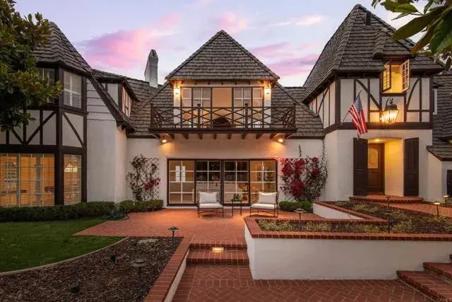 This Tudor style home embodies the charm of classic architecture, the character of unique spaces, the convenience of its village-close yet private location and epitomizes La Jolla's fine lifestyle. Upon stepping onto the grounds of the gated estate, the feeling of being at a compound in the English countryside embraces you. Inside, the homes layout offers 4 bedrooms plus an ornate office, 3 staircases accessing separate spacious suites including the primary bedroom, and entertaining spaces thatinclude formal living & family rooms and a billiards room with bar. The large, gourmet open island kitchen is a highlight of this inviting home, and is positioned perfectly to enjoy the north coast ocean and verdant canyon views. Exquisite millwork, multiple decks and patios, a dipping pool & spa, ample storage, and a huge dining room originally designed as a dance hall are just a few of the features this home so gracefully offers. The property is sure to become a family heirloom ready for multiple generations to enjoy and cherish.