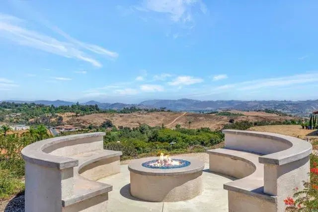 229 Circa Del Cielo is "Next to Heaven!" Amazing 270-degree blue sky and mountain views from this 2+ acre elevated SINGLE level estate. Private cul-de-sac location within the gated 'Hill Ranch' community. Bonsall Schools. Owned 7/kW photo voltaic solar. Dual zone A/C. Gourmet kitchen plus light and bright walk-in pantry. Open great-room design with numerous view windows. Custom-built great room and primary bedroom cabinetry create added functionality and storage. Natural gas fireplaces. Single level living-all bedrooms on one level. More views from the primary bedroom. Secondary bedroom features separate outdoor entrance. All bedrooms have walk-in closets. Voluminous views from custom outdoor firepit. Covered patio with ceiling fan, misting system and more amazing views. Large 'Vita' spa w/electric locking gazebo cover with more views. Cement driveways. Water wise landscaping. Path lighting. Agaves, CA native plants, Cacti, personal fruit and personal avocado trees. Second cement driveway leads to gated RV parking pad w/30A and 50A plugs. Fire suppressant system throughout. 3 car garage with storage racking and UL-listed two-hour burn prevention safe. No HOA.