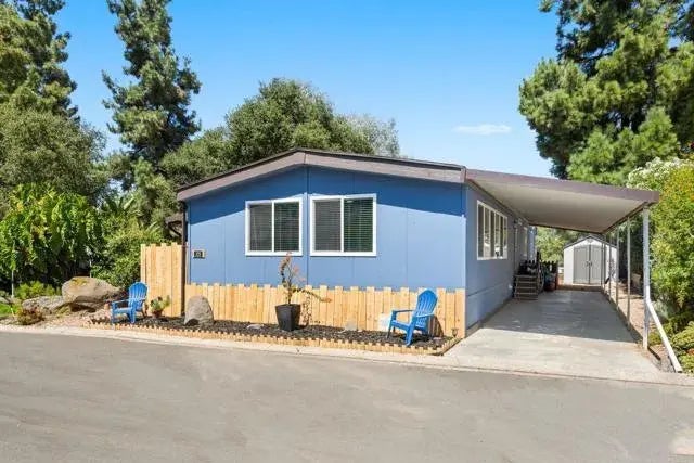 Welcome to your beautifully remodeled 2 Bedroom, 2 Bathroom home in the highly desirable Casa de Amigos 55+ community! Surrounded by nature, this lovingly maintained residence has been thoughtfully updated with brand-new LVP flooring and baseboards, smooth-textured drywall, fresh interior and exterior paint, and a guest bathroom refresh. New dual-pane windows flood the space with natural light and the home is equipped with central AC for year-round comfort. The kitchen is also freshly painted with a cooktop island and custom hood vent. Step outside to a spacious deck, perfect for relaxing as you take in the peaceful views of your garden and the open community space. Nestled at the back of the neighborhood, this home offers unmatched privacy, making it a true retreat. The community boasts fantastic amenities, including a pool, spa, game room, clubhouse, and more. Embrace a serene lifestyle in this unique terraced lot mobile home park, set among trees and boulders, while only minutes away from grocery stores, retail, restaurants, home improvement stores, and the 15 and 78 freeways. Citracado Parkway has now been pushed through, making it incredible convenient to Stone Brewery and Palomar Hospital. Space rent currently under $800/mo.