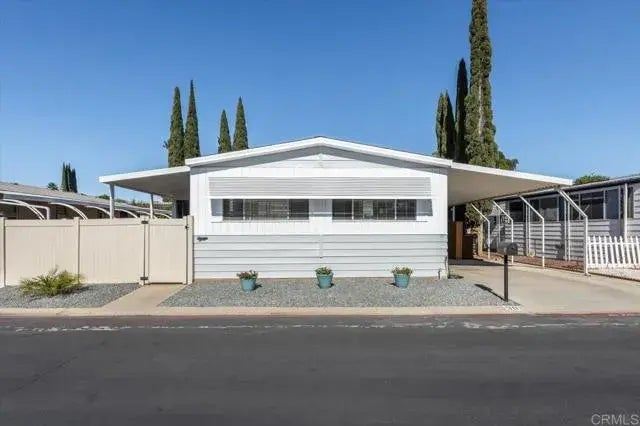 3 Bedroom / 2 Bathroom home located in a Family Community with no age restrictions! Very generously sized lot boasts a huge fenced backyard with real grass! This great split bedroom floor-plan provides separation & privacy between the Primary Bedroom and two Guest Bedrooms. Walk in closet in Primary Bedroom. Updated Kitchen and Bathrooms. New shower in Guest Bathroom. Separate Living and Family rooms provide plenty of living space but there is also an enclosed porch that makes a great craft or hobby room! Home was just recently releveled this year in 2024! The carport is extra wide at 15' and should easily fit at least 3 cars. 2 newer Tuff sheds convey. The Moonglow community has lovely amenities like a children's play area, rec hall and pool and is located near highways 15 ad 78, Palomar Medical Center / Hospital, Stone Brewery, shopping, dining, and more! Space rent is $950 per month. Seller financing may be considered with approved terms and minimum 50% down. Please ask Agent for preferred lender contact info.