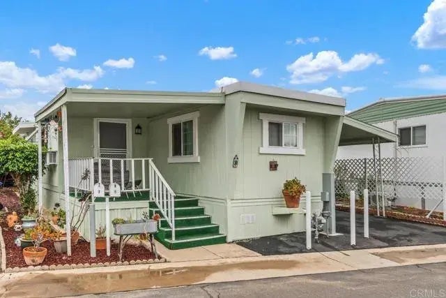 Prepare to be impressed from the moment you arrive! Beautifully Remodeled 2 Bedroom, 1 Bath Plus Bonus Room Perfect for Your Office and Laundry. Home has had approximately 266 square feet of additional space added and been remodeled, not included in square footage. Experience pride of ownership throughout this adorable home. Front porch, spacious backyard with newly laid pavers, and storage shed in the backyard are perfect for gardening and storage! Newly remodeled open kitchen with bar seating and dining area. Spacious living room with plenty of natural light. New air and heat wall units. New recessed lighting and dual pane windows throughout the home. Beautiful new flooring and paint throughout the home. In addition to two bedrooms, there is a large indoor laundry room with space for an office or storage! Primary bedroom with new custom ceiling fan and light fixture. Second bedroom perfect for guest, office, or art studio. And don't forget your third room for laundry, storage, or office! Second Bedroom, Living Room, and Laundry Room are not included in square footage. Enough space for two cars under the covered carport! LOCATED WITHIN A PARK WITH FULL AMENITIES! PERFECT OPPORTUNITY TO OWN IN 55+ PARK WITH LOW SPACE RENT! Monthly space rent for the new owner will be $920 plus utilities. Central to Shopping, Restaurants, and Transportation. Amenities including Pool, Laundry Rooms, Clubhouse, Rec Room w/ Pool Tables, Chapel, TV Room, Library, and Community Kitchen. Must See! Don't Miss Out On This Must See Property!