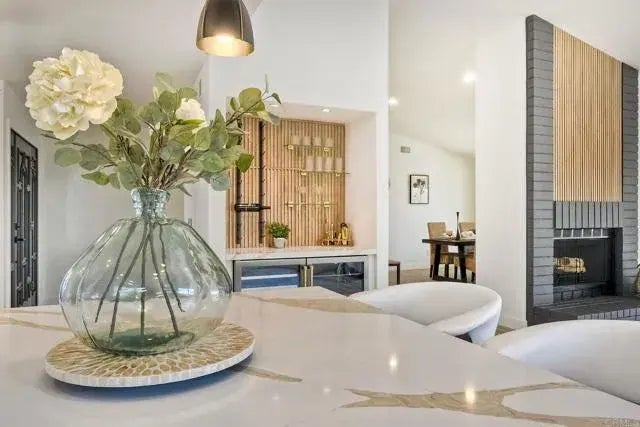 Beautifully modernized single story home with interior that blends elegance with comfort. The open floor plan features high ceilings, luxury vinyl floors, and plantation shutters, all bathed in natural light, creating a bright and airy atmosphere. The gourmet kitchen is a chefs dream, boasting brand new cabinets, beverage center, Zline appliances, custom lighting fixtures, beverage center, pantry, and a stunning island with waterfall stone countertops. The attention to detail continues with cozy fireplaces in both the family and dining rooms. Both bathrooms have been fully remodeled with designer touches including new cabinets, countertops, custom tile, and upgraded fixtures. The master suite is a serene retreat with a large walk-in closet, custom organizers, an accent wall, and an en-suite bath featuring double sinks and luxurious finishes.Step outside into your own west-facing outdoor oasis, perfect for entertaining or simply relaxing. With low maintenance manicured landscaping, youll feel like youve entered your personal paradise. Plus, the coastal breeze keeps the home cool all year round. This is more than just a homeits a rare opportunity to experience luxury living in one of Carlsbads most sought-after neighborhoods. Meticulously designed home sits on a spacious 7,443 sq ft flat lot, with no HOA fees, Mello Roos, no powerlines or road noise. Beautifully modernized interior that blends elegance with comfort.
