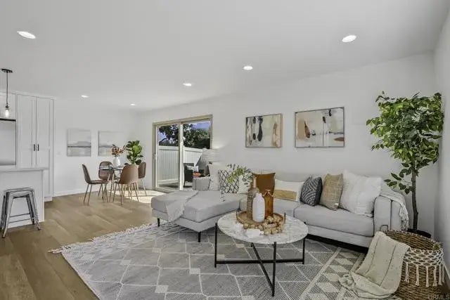 HIGH end finishes in HIGH COUNTRY VILLAS, a Spanish dream community for 55+. Completely remodeled down to the studs, this sunny, fresh & bright 3 bed/2 bath Spanish villa will enchant. A desirable corner lot near the Forestdale pool area & golf course offers both a garage plus extra parking. There is a patio off the primary bedroom for enjoying morning coffee and another private, fenced patio/side yard off the living area for relaxation or dining outdoors. The kitchen has been tastefully remodeled with brand a new suite of stainless appliances, carrera quartz counters with subtle grey veining & a sparkling ceramic subway backsplash dramatically reaching the ceiling. Each individual new shaker style cabinet is custom millwork, not purchased, but crafted by hand. Floors throughout are wide planks in a french oak tone. The bathrooms are completely remodeled & enhanced with vertical subway shower surrounds, upgraded hardware & furniture-style vanities in crisp white. Mirrors, fixtures and hardware in a sleek stunning black are offset by walls of serene white. The community offers both fun and relaxation, with clubhouse, grassy parks, pool/spa, golf, bocce ball, game nights, pickleball & more. With beaches nearby, Encinitas coastal boutiques, the Forum shopping center & restaurants galore... it's like being on vacation every day... and you've earned that.