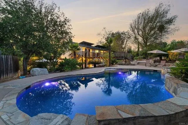 Welcome to your dream home, a beautifully updated 5-bedroom, plus office, with a POOL and OWNED solar! This residence combines modern elegance with ultimate functionality. Spanning 2,925 sq ft on a sprawling 1-acre lot, this home features an inviting open floor plan perfect for entertaining. The heart of the home is a stunning kitchen equipped with custom cabinetry and high-end appliances, seamlessly flowing into an entertainers delight backyard. Imagine hosting friends and family around the sparkling pool and spa, both heated by a sophisticated solar and gas system, while enjoying the convenience of a Wi-Fi-controlled pool system. The backyard boasts a fully-equipped BBQ area, ample seating, and a cozy fire pit, surrounded by lush landscaping, mature citrus trees, figs, an avocado tree, and nectarines, creating your own private oasis. Inside, discover a full bedroom and bath conveniently located downstairs, perfect for guests or multi-generational living. Upstairs, the primary suite is a true retreat, featuring a luxurious bathroom and a bonus Jr. primary suite with its own mini living room, bedroom, and private balcony overlooking the backyard. With a fully owned solar system, no HOA, a 2-car garage, ample parking including RV space, and smart home features like Wi-Fi locks and a tankless water heater, this property is a rare find that promises comfort, convenience, and style. Dont miss this opportunity to make this exceptional home yours!