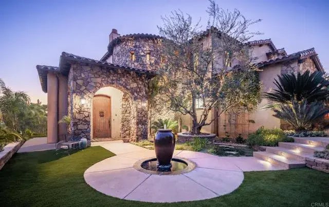 Welcome to your personal paradise, an exquisite turn-key custom built Tuscan masterpiece that exudes elegance at every turn. This luxurious estate features breathtaking panoramic views, showcasing the pinnacle of quality craftsmanship and timeless architecture. Step into the open and spacious chef's kitchen, fully equipped with professional grade Thermador appliances. Enjoy forever views of the Coronado Islands, Point Loma and City Lights while dining and entertaining. Experience the elegance of a curved staircase that leads to the romantic master suite. No detail has been overlooked in this stunning home. Situated on 1.24 acres of exquisitely landscaped grounds, this property is a tropical oasis complete with a cascading waterfall into a private lagoon spa/dipping pool, a cozy fire pit, and a fully equipped outdoor kitchen area. With over 900 square feet of decks, you can enjoy vibrant sunsets year-round and take in the endless views of San Diego and the Pacific Ocean. Experience resort-style living with tropical garden pathways lined with exotic plants and fruit trees. Find tranquility as you meditate on majestic granite boulders overlooking serene open spaces, all while the soothing sound of the waterfall surrounds you. Inside, the home features three inviting fireplaces, a theater room with a 7-speaker surround system, and a built-in speaker system that enhances the warm and inviting ambiance throughout the living areas. Grand entrance, high ceilings throughout, hand-honed walnut floors, 8-foot Alder wood doors, and ornate lighting and chandeliers are just a few of the