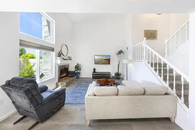 Spectacular home located at the end of a quiet cul de sac in the gated community of Sonata/Allegro in South Escondido. Upon entering through the front doors, you are greeted with high ceilings and gorgeous windows on all sides. So much natural light! A gorgeous parklike setting surrounds you. You also have so much privacy, situated at the end of the street and surrounded by trees. This home has been beautifully remodeled. Vinyl floors throughout the first floor. Quartz counters in the kitchen, newer cabinets, modern backsplash, gas range, and a quaint breakfast nook. Your dining room opens up to your living area with a cozy fireplace. Downstairs you have a bedroom with sliding door access to the courtyard, and full bathroom. Upstairs features your guest bedroom and bathroom with dual sinks, master suite, and access to large deck - another space to enjoy views and the outdoors. You have a relaxing backyard, perfect for BBQ's. You are also conveniently close to the pool. This South Escondido home makes for an easy lifestyle! So close to a number of amenities to enjoy - Target, Westfield North County Mall, The Vineyard Golf Course, Orfila Winery, and much more. Call to tour this home today!