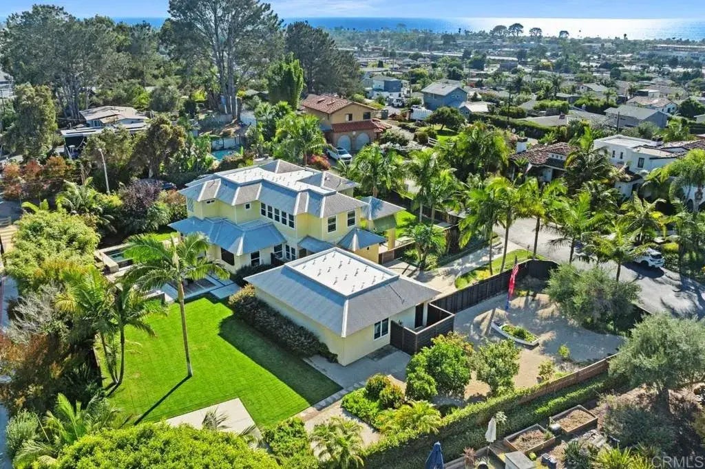 Introducing a stunning, custom built ocean view home in the heart of Encinitas. This Bahamian inspired masterpiece features 4 spacious bedrooms, an optional 5th bedroom or office, and 4 full bathrooms across 3,470 Sq Ft of meticulously designed living space. Situated on a .51-acre ADU-friendly lot, the backyard is perfect for entertaining with a cascading infinity spa, cozy fire pit, outdoor kitchen, and lush landscaping including bamboo and fruit trees for privacy. Inside the open concept design boasts high-end finishes throughout. The gourmet chefs kitchen is equipped with a Sub Zero refrigerator, Miele dishwasher, Viking stove, and a 12-Ft quartz island. The primary suite offers ocean views, a private balcony, and a luxurious ensuite with a soaking tub, walk-in shower, and dual vanities. Additional features include a surf shower, Tesla solar panels (paid in full) with backup generator, Cat 6 networking, bamboo flooring upstairs, a 3-car secured garage, and more. Located just minutes from the beach, top-rated schools, and easy access to I-5, this home offers the ultimate blend of luxury and convenience in coastal living.