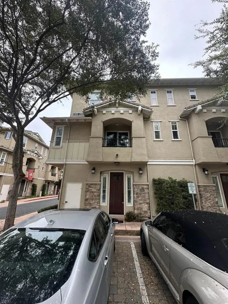 Welcome to this 3b/3ba townhome located in the highly desirable Solaire community in Old Creek Ranch. This home features rich wood floors, coffee kitchen cabinets, stone counters, SS appliances, private balcony, carpet in the bedrooms, brand new AC and more! The main living area has a private balcony and includes a bedroom which could also make a great office plus a full bath. The primary bedroom and another bedroom both with en-suite baths are on the top floor. Not to mention this home includes a community pool and spa just steps away from your door! Hurry as this one will go quick.