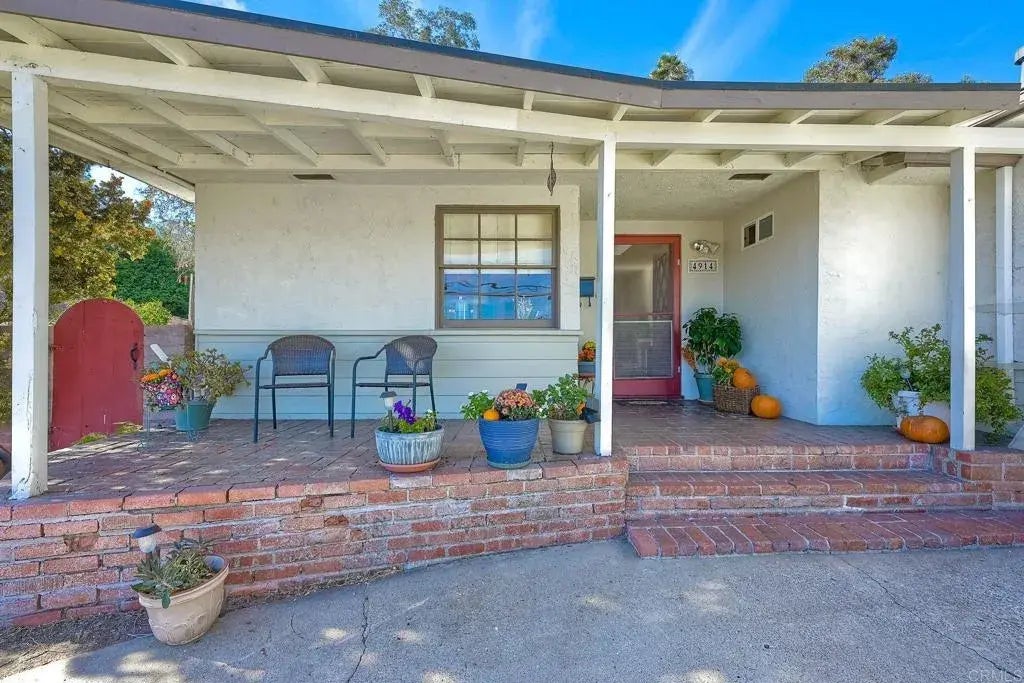This inviting single-story ranch home in the heart of Allied Gardens offers a blend of classic charm and thoughtful updates. The home features a welcoming brick front porch surrounded by vibrant flowers, a skylight in the foyer, refinished hardwood floors throughout, and an open-concept layout forming a great room of the living room, dining room, and kitchen. Dacor Oven & warming oven; The living rooms wood-burning fireplace and vintage windows provide warmth and character, while the updated hall bathroom adds modern convenience. The backyard is a peaceful retreat with a cement patio, hillside terrace, mature trees and plants, and lush landscaping, perfect for relaxing or entertaining. Roof approx. 3yrs. old.