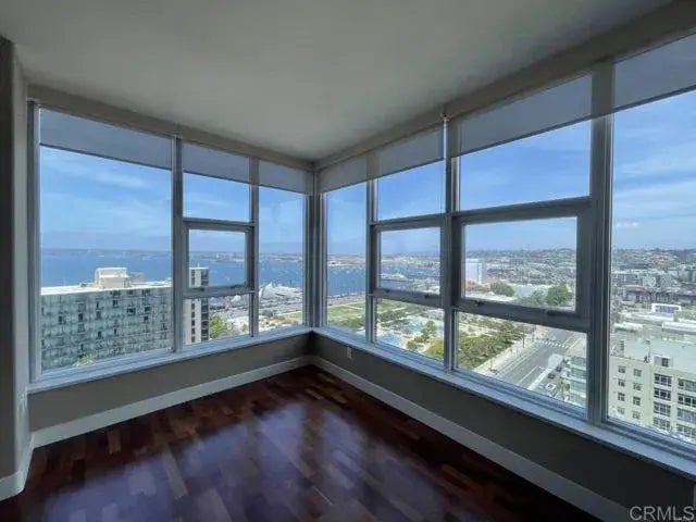 Experience breathtaking California sunsets from this luxurious Northwest-facing condo at Bayside! The 2-bedroom, 2-bath unit features a gourmet kitchen, hardwood flooring, fireplace, and two balconies with stunning city, bay, and coastline views. Enjoy resort-style amenities, including 24/7 concierge, pool, spa, fitness center, and more. Two side-by-side parking spaces and separate storage add convenience. Located in Downtown's heart, this condo is steps from the Historic Santa Fe Train station, Waterfront Park, Little Italy, and Petco Park. Savor the city's energy and unparalleled views in this premier residence.