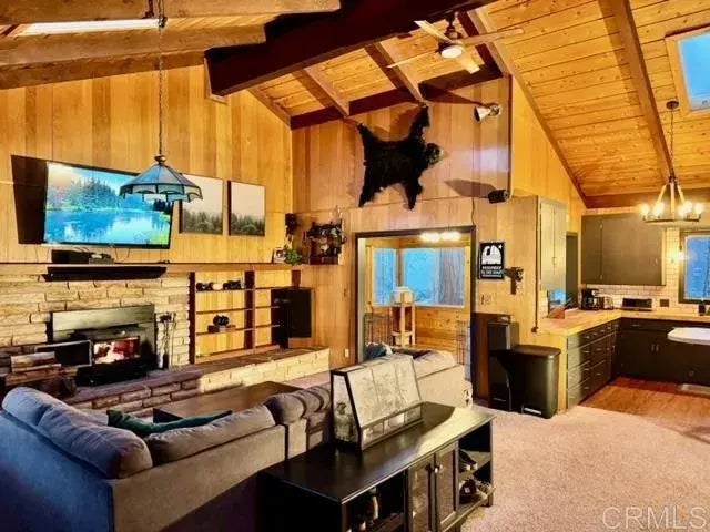 "Relax on the Rocks", a well-built, charming cabin on beautiful Palomar Mountain. S'more supplies included for a fun time 'round the campfire with your party lights. Barbecue on your front deck, enjoying the sunset sky. Warm up to a beautiful fireplace in the great room with open beam ceiling. Open to the newly remodeled kitchen with so much storage and counter space. Also open to the office, craft or laundry room looking out to the forest. Primary suite and bath on walk-in level plus take the stairs to your wonderful guest room/second sleeping area with a 3/4 bath and tons of storage. Walk-out basement with even more storage plus new shed for all your sleds and tools. Fabulous boulders and campfire area in your own private forest tucked away on 1/3 acre. Love to have you join full time or use as weekend escape in this enchanting setting among the boulders.