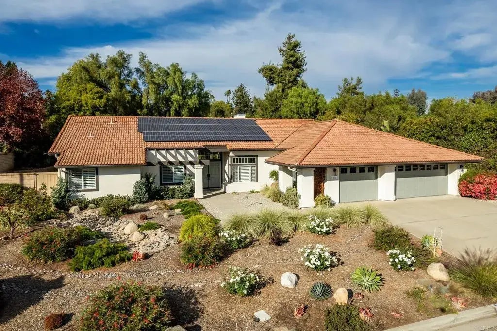 A true Entertainer's Dream! Nestled in a coveted, no-HOA neighborhood, this exquisite 4-bed, 2.5-bath home offers everything you need for comfort and luxury. Boasting a spacious, open floorplan with soaring high ceilings and abundant natural light, this single story home is designed for modern living. Step outside to your private backyard oasis, featuring a sparkling pool and spa, a large covered patio with built-in BBQ and bar areaideal for outdoor dining, entertaining or relaxation. Enjoy the beauty of drought-tolerant landscaping thats both low-maintenance and stunning. The oversized primary suite offers a peaceful retreat with direct access to the backyard, while the three-car garage and RV parking provide ample space for all your toys. With solar panels that are fully owned and paid off, youll enjoy both energy efficiency and savings. This home is perfectly situated in a desirable Escondido neighborhood, offering privacy, luxury, and space to thrive, with easy access to top-rated schools, parks, shopping centers, and major freeways. Dont miss this incredible opportunity!