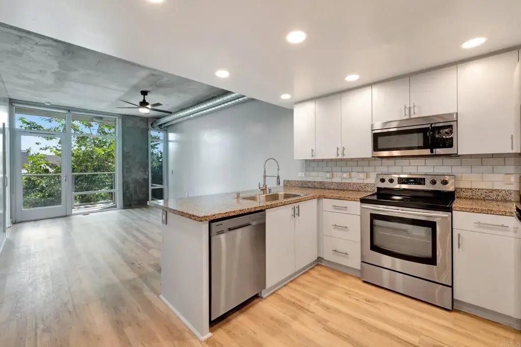 Experience the pinnacle of urban living in this stunning 2nd-floor loft at Smart Corner in East Village! Featuring two separate bedrooms, this modern space offers a spacious open floor plan, highlighted by exposed concrete, floor-to-ceiling windows, and a private balcony that captures the essence of contemporary style. This home has been thoughtfully upgraded with new flooring, appliances, upgraded bathroom, and improved lighting throughout. Enjoy the vibrant community amenities, including a rooftop deck with barbecue grills, a hot tub, and a community garden, all with breathtaking panoramic views. Conveniently located next to City College, the Trolley, and just moments from freeway access, this loft also includes one underground parking space and is VA approved. Dont miss your chance to make this East Village treasure your new home! Seller is open to potentially accommodating an interest rate buy-down for the buyer with reasonable offer.