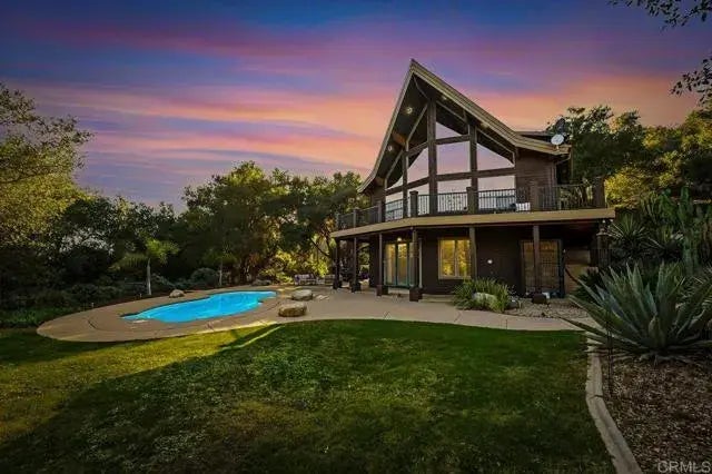 Welcome to 32610 Lilac Rd., a stunning 3-bedroom, 3-bath custom cedar home nestled on 5.07 acres in Valley Center. This luxurious property offers privacy, breathtaking views, and modern amenities, all just 15 minutes from I-15. The main level features an open-concept layout with a bedroom, bathroom, family room, kitchen, and laundry room. Granite countertops, custom cabinets, and large windows enhance the living spaces with natural light and warmth. The upstairs primary suite provides a private retreat with serene views, while the lower level includes a recently updated bedroom and bathroom with a private entrance. An adjacent space on the lower level offers an option to add a kitchenette, creating a versatile guest or in-law suite. The outdoor amenities are just as impressive, including a sparkling pool and a newly updated synthetic deck, perfect for entertaining or relaxing. A 50' x 33' metal shop with a large roll-up door offers ample storage or workspace, ideal for hobbies or business needs. For horse lovers or outdoor enthusiasts, the property is located near scenic horse trails. A gated entrance ensures privacy and security, making this property a serene haven in the heart of nature. This exceptional home combines rustic charm with modern luxury, offering a unique opportunity to live in comfort and style.