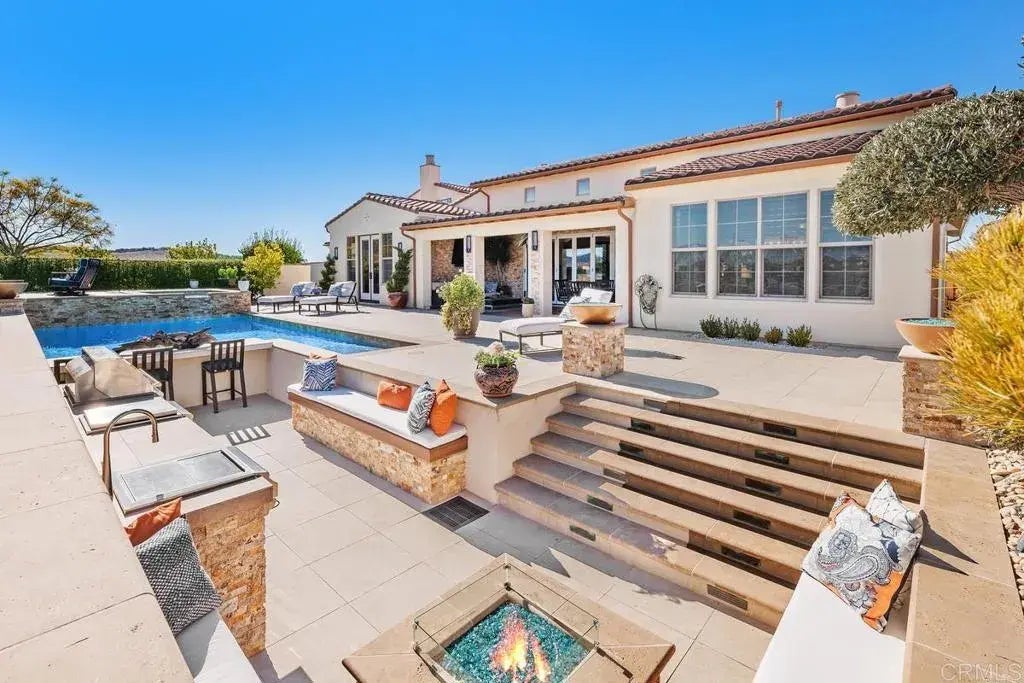 Experience the essence of luxury living in this exquisite home with stunning canyon views. The thoughtfully designed open concept floor plan lives like a single level & every aspect of the home has been meticulously curated with attention to detail at every turn. Boasting 4 bedrooms, 3 bathrooms & 2,898 square feet of living space. The kitchen is highlighted with end appliances & a large prep island that opens to both the Great Room & Formal Dining Room. Enjoy arched doorways, vaulted ceilings, La Cantina doors to a covered patio overlooking a backyard oasis, an upstairs detached casita complete with a full ensuite bathroom & kitchenette, & a spacious Primary Suite with a soaking tub, luxurious walk-in closet with custom built-ins & French doors to both the backyard & front courtyard. The entertainers outdoor paradise includes the front courtyard with a serene fountain, waterfalls, a living wall & glass fire pit & the backyard offers a pool & jacuzzi with a sunken swim up bar, built-in BBQ, glass fire pit with built-in seating & a raised deck to soak in the canyon views. Nestled in the coveted Del Sur master planned community, renowned for its outstanding amenities & top-tier public schools, this home offers a perfect fusion of beauty & functionality in the indoor/outdoor California lifestyle.