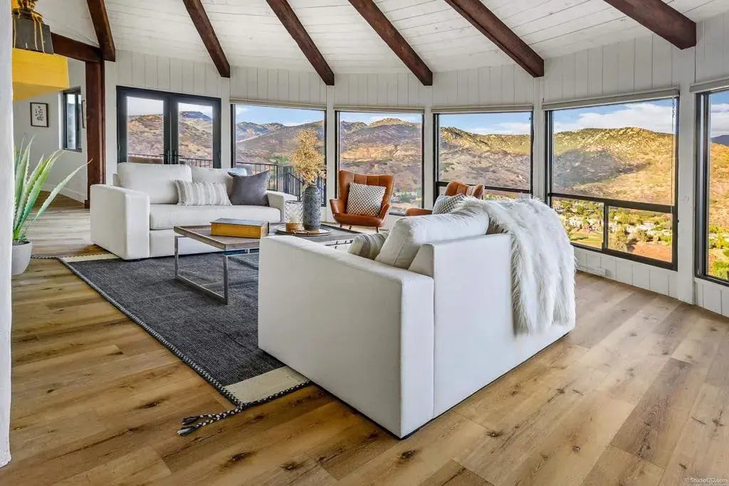 Discover Serenity in Your Own Hilltop Adobe Retreat. Perched atop 6.93 acres, this stunning Adobe home offers unrivaled panoramic views of San Pasqual Valley. With a timeless Spanish Mission design, vaulted ceilings, and expansive beams, every room frames a breathtaking landscape. Cozy up by the grand fireplace in the living room, where nearly 180-degree views stretch across the valley.The first floor features a spacious kitchen with quartz countertops, two welcoming living areas, 2.5 bathrooms, and two bedrooms, including a master suite with a walk-in closet, balcony, and an updated shower. Step outside onto the deck and soak in views of your avocado grove and the majestic mountains beyond.Downstairs, a private bedroom and full bath with its own entrance provide an ideal space for guests, an Airbnb, ADU, or in-law suite. The propertys mature avocado and fruit trees add to its charm, offering endless possibilities.Dont miss this rare opportunity to own a slice of paradise. Schedule a showing today and experience life as king of the hill!