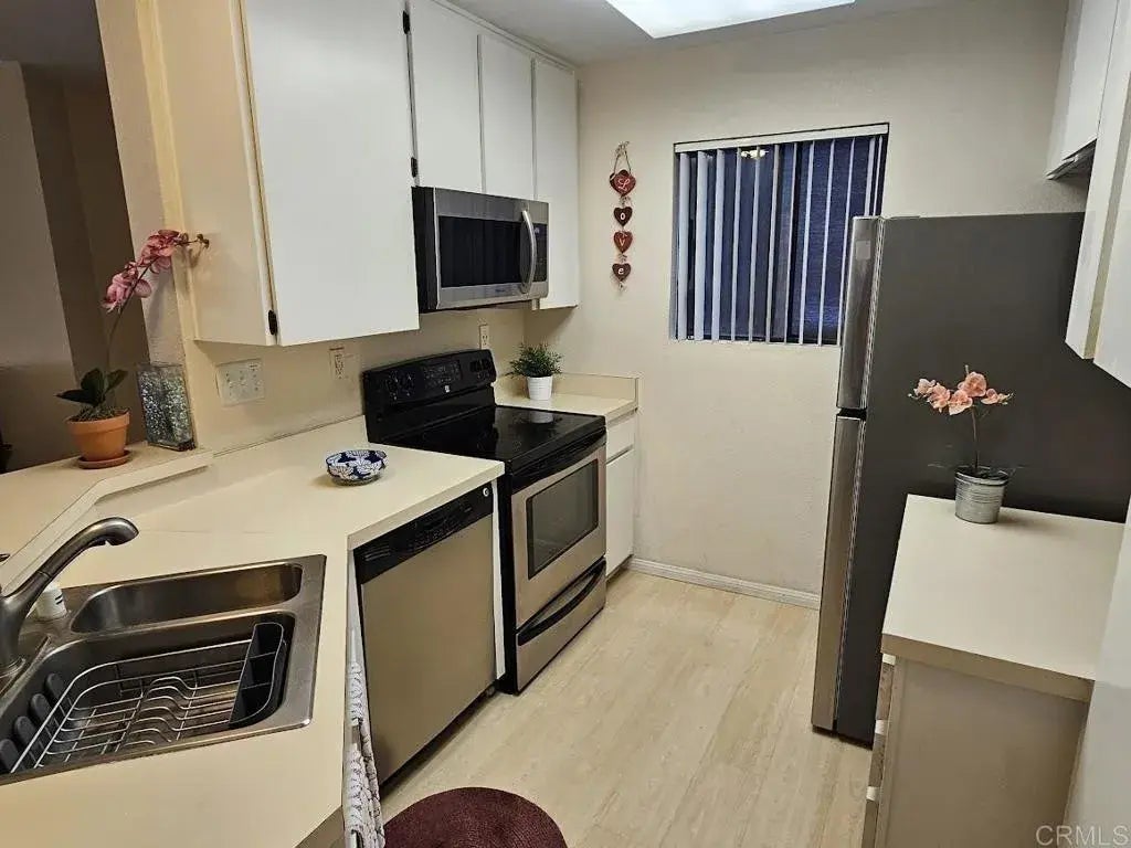 A Fabulous 2-bed, 2-bath condo in San Diego provides easy freeway access and a desirable split-floor layout. With no stairs to navigate, a one car garage, and a parking permit included, it offers convenience and comfort. A washer and dryer inside a hallway closet adds to its practicality. The building is built on a hill, so the entry-level has no stairs, but sliding doors on the second floor overlook the pool. Can be furnished for higher price or unfurnished.
