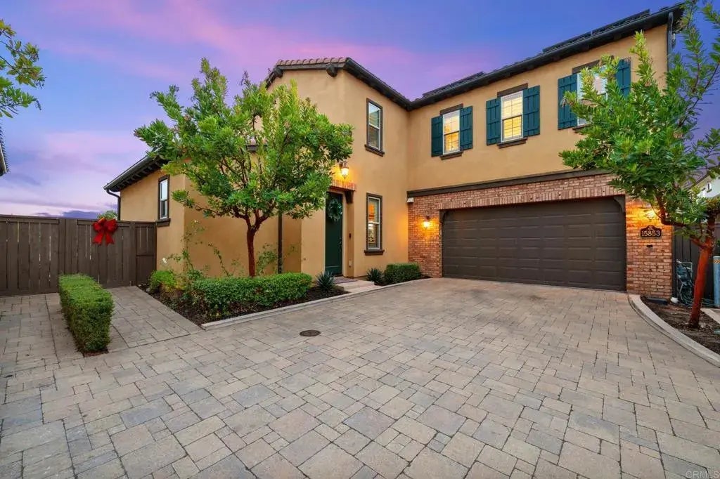 FOREVER VIEWS highlights this designer perfect 4 bedroom + custom built in Office/Loft + 3 bath dream home flooded with GLOWING western sunsets and designer finishes. A Del Sur PRADO exclusive boasting the largest floorplan in the community with a full bed and bath on the main level and located on a highly sought after flag-lot with privacy, open space behind, exclusive transparent fencing, a chefs kitchen with stainless steel appliances, stone countertops, and custom lighting that seamlessly flows into the great-room, dining, and beautifully crafted backyard that you enter through floor to ceiling disappearing walls of glass. Enjoy entertaining family and friends in the thoughtfully appointed backyard with luxury BBQ, built-in seating areas, custom-built gas fire pit, and a statement piece fountain up-lit by hand-crafted lighting and lush landscape. Walk into your gorgeous, huge laundry room from your spotless 2-car garage with storage and epoxy flooring into your kitchen, making life extra easy! Hotel inspired primary suite with custom-built entertainment wall, spa bath, and mind blowing primary suite custom closet two secondary bedrooms and full bath round out the second floor. A + schools, community pool & spa, skate park, rec center, playgrounds, OWNED SOLAR, tankless water heater, owned water softener, and so much more!