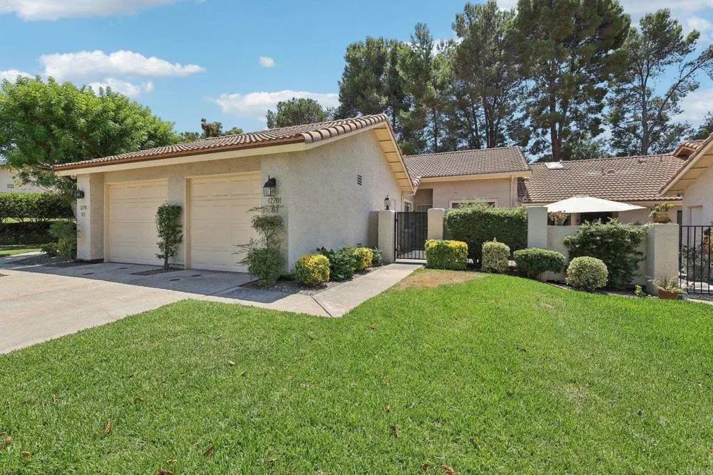 Welcome to your charming single-story home in Oaks North, Rancho Bernardos premier 55+ community! This updated 2 bed/2 bath residence features fresh paint, new flooring, stylish light fixtures, and a new water heater. Enter through a private gated courtyard to vaulted ceilings and abundant natural light. Enjoy a well-equipped kitchen with ample cabinet space, a beautifully remodeled primary bath, and spacious bedrooms. Relax on your private back patio with no homes behind you, and benefit from an attached garage with storage. Oaks North offers fantastic amenities, including a fitness room, pool, spa, tennis, pickleball, golf, a library and more. Experience the perfect blend of comfort and community!