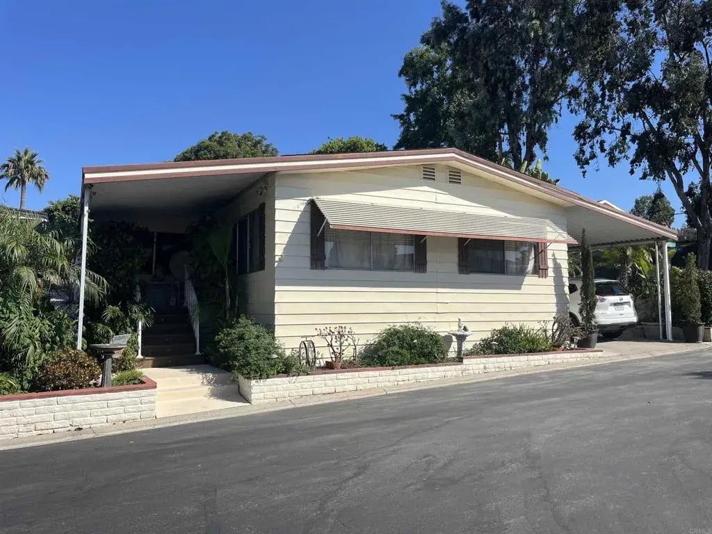 Corner lot located in a beautiful Family, All Ages community with rent control! No age restrictions! Home has many recent upgrades including new exterior paint, new A/C & furnace, recent relevel, new toilets, newer refrigerators, dishwasher, range & hood, & touchless sink faucet. Roof is approximately 5 years new per Seller. California room (enclosed porch) provides additional usable living space. Large storage shed. Conveniently located near guest parking, clubhouse, pool, spa, and other amenities. Vista Meadows is a well-cared for all age park with rent control ($800 / month) and many amenities including: Clubhouse, pool, Jacuzzi, billiard room, laundry room, a playground with a swing set and a basketball court. This community is conveniently located near highway 78, shopping, dining, schools, colleges (Palomar Community College and CSUSM), the new down town North City and so much more! One small pet under 25 lbs is permitted. All prospective residents must complete an application with the park management and be approved.