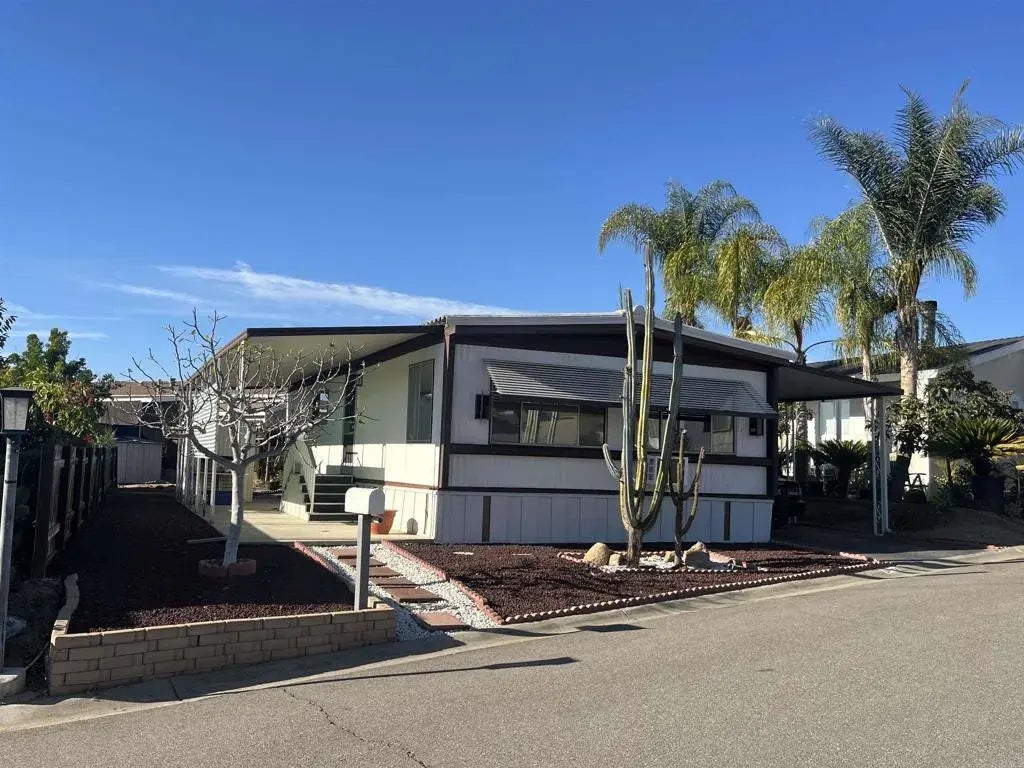 Located in a Family Community with no age restrictions! This large lot offers a very spacious yard, which is unique to mobile home living! Newer furnace was replaced in 2017. Both bedrooms offer a walk in closet. Two storage sheds. Property needs some TLC and has been priced accordingly. Lake Bernardo MHP is a gated community that has lovely amenities including a beautiful common area with a lake, ducks, walking paths, greenbelt, clubhouse, pool, and community laundry. Located near highways 15 ad 78, Costco, Walmart, other shopping, dining, and more! Space rent is $831.73 per month. One pet under 25 lbs with prior approval by park management is permitted. Must be owner occupied. Buyer must qualify financially with the park management to be approved to purchase.