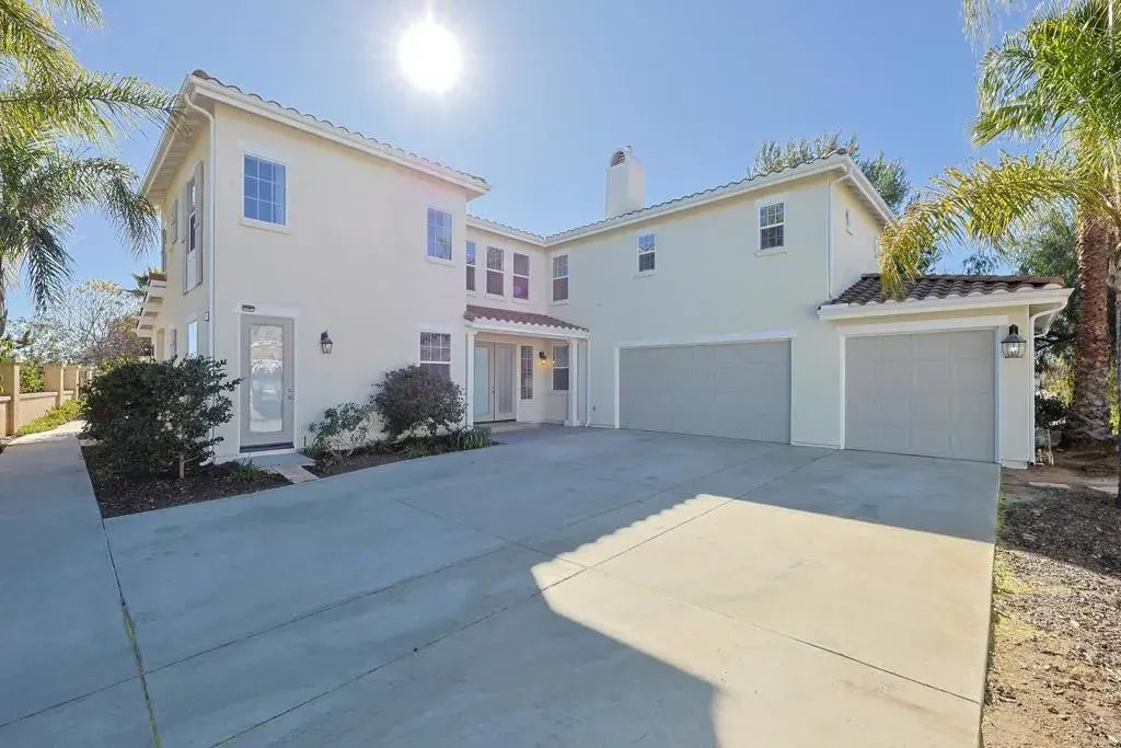 Gorgeous 5 bedroom home plus loft for rent in South Escondido! Situated at the end of a quaint cul de sac. Brand new paint inside and out, and new gutters! Upon entering the home, you are greeted with an arched entryway and a beautiful sunlit formal living room with high ceilings and a gas fireplace. Full bedroom and bathroom on the main floor with an outside entrance. Dining room with french doors - perfect for hosting. Large living room with a wall of windows opens up to your kitchen which features a new dishwasher, walk-in pantry, vegetable sink, gas stove, and stainless steel refrigerator. Brand new luxury vinyl plank floors throughout! New carpet on the stairs. The entire home beams with light from the multiple windows on all sides. Upstairs you have an oversized loft, an ensuite bedroom/bathroom, luxurious master suite, and 2 additional bedrooms connected by a jack and jill bathroom with dual sinks. The master suite has a beautiful balcony to enjoy the trees and view. It also features a cozy fireplace and an enormous bathroom with a soaking tub, large walk-in shower, vanity mirror, and 2 oversized walk-in closets. The guest bedrooms have ample closet space - and all but one have walk-in closets. The laundry is located upstairs and has a sink and multiple cabinets. So much storage throughout the entire home. Long driveway for multiple cars plus a large 3 car garage. 2nd refrigerator in the garage. Huge 1/2 acre lot with freshly trimmed trees and a low maintenance/low water backyard. Convenient location close to all! Desirable schools. Call today to view.