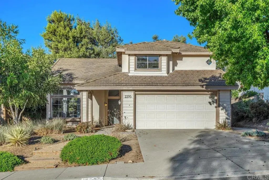 Welcome to Rocky Point Ranch, one of the most highly sought after neighborhoods in Escondido, with homes rarely coming available. Tucked away below the foothills with nearby green spaces and walking trails, yet conveniently close to schools, parks, stores, golfing, and more. As you enter the home you're greeted by soaring ceilings and large windows that flood the home with natural light making this 4 bed, 3 full bath home feel expansive and inviting. Formal living and dining area welcome you into the home. The kitchen is well equipped with stainless steel appliances, upgraded counters, backsplash, and finishes. Adjoining the kitchen is a breakfast nook and family room with a cozy gas fireplace. Step outside into your sizable backyard with stunning mountain views and no neighboring homes to obstruct your views to the rear. One bedroom and full bathroom downstairs offers a comfortable place for guests and working from home. Head upstairs to find three more bedrooms and two full bathrooms, including the large primary suite with vaulted ceilings, a second fireplace, large window with a view to the mountains, connected bathroom, and dual closets, one being a large walk-in. 2276 Creek Hollow Place is fresh, stunning, and turnkey. Don't miss out on this opportunity to make this house your home.
