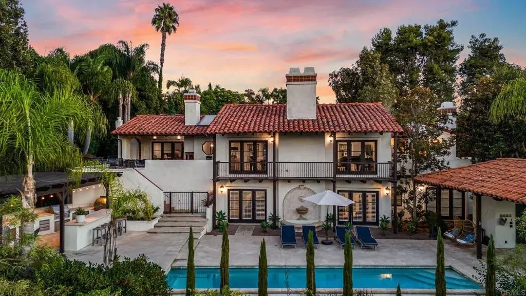 Rare Opportunity to Own in Fairbanks Ranch A Treasure of Luxury, Views & Timeless Charm! Step into a world of elegance and tranquility with this stunning Lillian Rice-inspired Spanish-style estate, perfectly positioned on a prime view lot in the prestigious North side of Fairbanks Ranch. Nestled at the end of a private cul-de-sac, this meticulously maintained 4-bedroom retreat offers the perfect blend of timeless charm and modern luxury. From the moment you enter the picturesque courtyard, youll be captivated by the homes warmth and sophisticationrich hardwood floors, soaring open-beam ceilings, and French doors that bathe the interiors in natural light. Every window and serene balcony frames breathtaking views, while multiple patios create seamless indoor-outdoor living. The thoughtfully designed layout offers ultimate comfort and versatility. The main level features a peaceful primary suite with a private patio, a secondary bedroom, and an elegant home office. Downstairs, two additional bedrooms and a spacious secondary family room open to the outdoor oasis, creating the perfect setup for hosting guests or enjoying quiet relaxation. Step outside to discover your own resort-style retreata sparkling pool and spa, tranquil fountains, and a loggia with a built-in shower set the stage for luxurious outdoor living. The built-in BBQ and pizza oven make entertaining effortless, while multiple alfresco dining areas invite you to savor the year-round Southern California sunshine. For wine enthusiasts, a climate-controlled wine cellar offers a touch of indulgence. Ideally located j