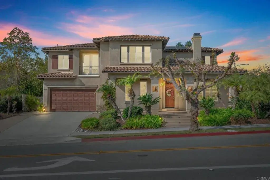 Nestled in the heart of 4S Ranch, this spacious, exquisite home is a harmonious blend of modern elegance and timeless charm. As you step inside, youre greeted by soaring ceilings and a sunlit expanse of beautifully maintained hardwood floors. The living room with an elegant fireplace opens seamlessly to the dining room. The open kitchen, a chefs dream, has granite countertops, an oversized island, a walk-in pantry, and warm wood cabinetry. It overlooks a cozy breakfast area and a family room with a second fireplace and French doors that lead to the outdoor oasis. The magic continues outside, where indoor-outdoor living comes alive, offering a stunning Cumaru wood deck overlooking a sparkling pool and spa. The glass-enclosed pool room adds a touch of sophistication, while elevated, unobstructed views invite you to soak in the serenity of your surroundings. The master suite is a private retreat, featuring a sitting area, a spacious walk-in closet, and an ensuite bathroom with a soaking tub, a large walk-in shower, separate his and hers sinks, and a separate vanity. There is also a versatile bonus room upstairs with large French doorsperfect for a playroom, game room, or even a home theater. The home also features a large laundry room equipped with ample storage and a sink, while the garage offers extensive storage solutions, including overhead racks and a platform. Thoughtful updates like split AC/heating units, a water softener and filtration system, owned solar panels for both the home and pool, and a tankless water heater ensure modern efficiency. Walkable to award-winning