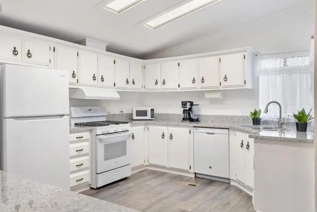 Own Your Land in Desirable Citrus Gardens 55+ Community! This beautifully renovated home sits on a desirable elevated corner lot in the highly sought-after Citrus Gardens 55+ senior park. Enjoy the benefits of land ownership - no space rent here! The elevated location at the top of the park offers stunning views and refreshing afternoon breezes. Inside, you'll find a spacious and modern white kitchen featuring granite countertops, new appliances, and a pantry. The large living room boasts vaulted ceilings, creating an open and airy feel. The huge master suite includes a walk-in closet. Fresh paint and new carpeting throughout complete the interior. A large utility room with storage cabinets -accommodates your washer and dryer. Ample parking is provided with a carport for up to three cars. 1st showing scheduled 2/8/25