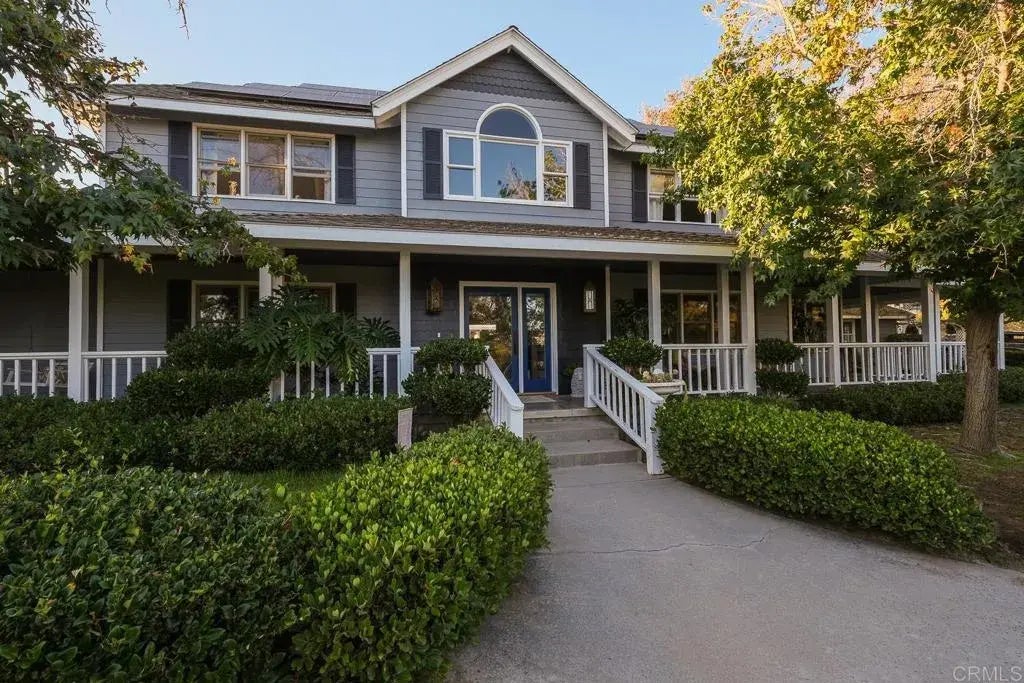Perched atop the rolling hills of Fallbrook, this gated 3.18-acre estate offers a rare combination of privacy, tranquility, and breathtaking panoramic views of the San Luis Rey Valley and Palomar Mountains. Designed by renowned builder Robert Youngren, this custom residence captures the essence of Fallbrooks charmwhere cool breezes drift through lush landscapes and every window showcases a stunning natural backdrop. Beyond the gates, a canopy of mature trees and winding trails sets the stage for a warm welcome. A wrap-around front porch invites quiet moments of relaxation, offering the perfect vantage point to take in the peaceful surroundings. Stepping inside, a dramatic, light-filled entryway leads into the heart of the home, where soaring ceilings and refined finishes create an atmosphere of understated elegance. The grand family room, with its two-story vaulted ceiling, stately fireplace, and custom built-ins, is designed for both comfort and style. French doors open effortlessly to an expansive patio, seamlessly extending the living space outdoorsideal for entertaining or simply enjoying the serene beauty of the land. Engineered hardwood floors flow throughout, enhancing the homes timeless appeal and cohesive design. The open-concept kitchen and dining area features granite countertops, custom cabinetry, and generous space for gathering, making it as functional as it is inviting. The first-floor primary suite is a true retreat, complete with a spa-like ensuite bath, featuring dual vanities, a soaking tub, and a walk-in shower, all framed by peaceful views of the surrou